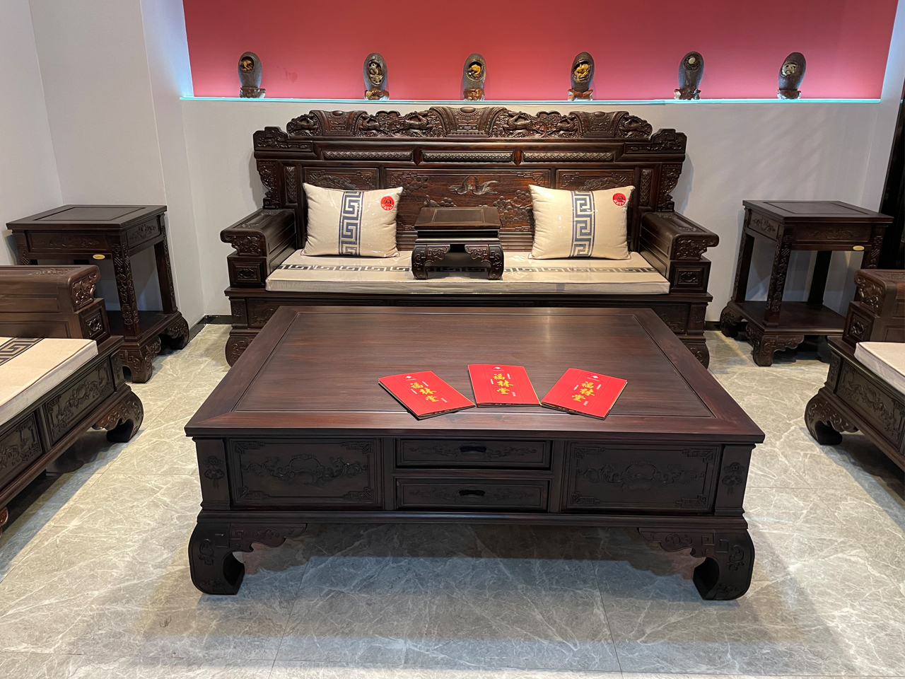2、紅木家具在房間內(nèi)具有較強(qiáng)的聚氣作用,能夠聚氣、聚財(cái)、聚人,從而改善人際關(guān)系,對(duì)人的事業(yè)發(fā)展和身心健康具有明顯的改善作用。
